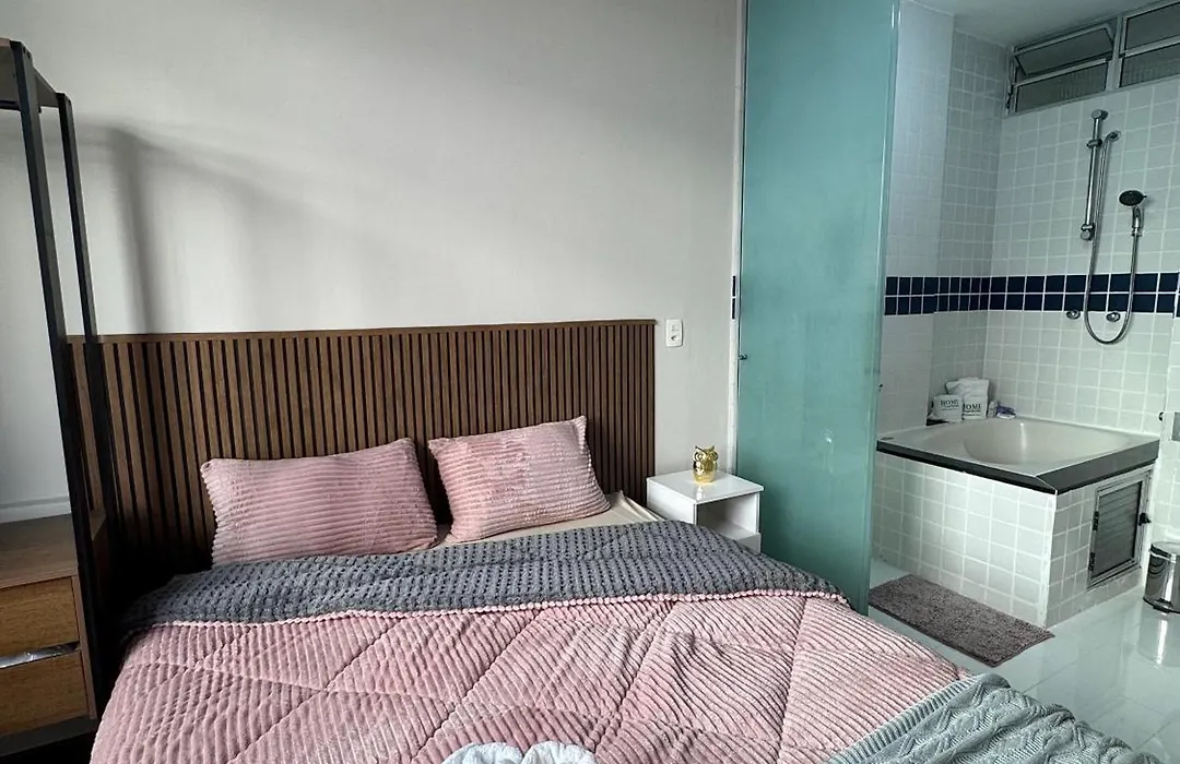A microwave, a fridge and kitchenware are provided for self-catering. This accommodation is within arm's reach of the restaurant Ellas. The nearest airport is Santos Dumont, 15 km from the apartment, and BRS 2 Djalma Ulrich bus station is 5 minutes' stroll away.